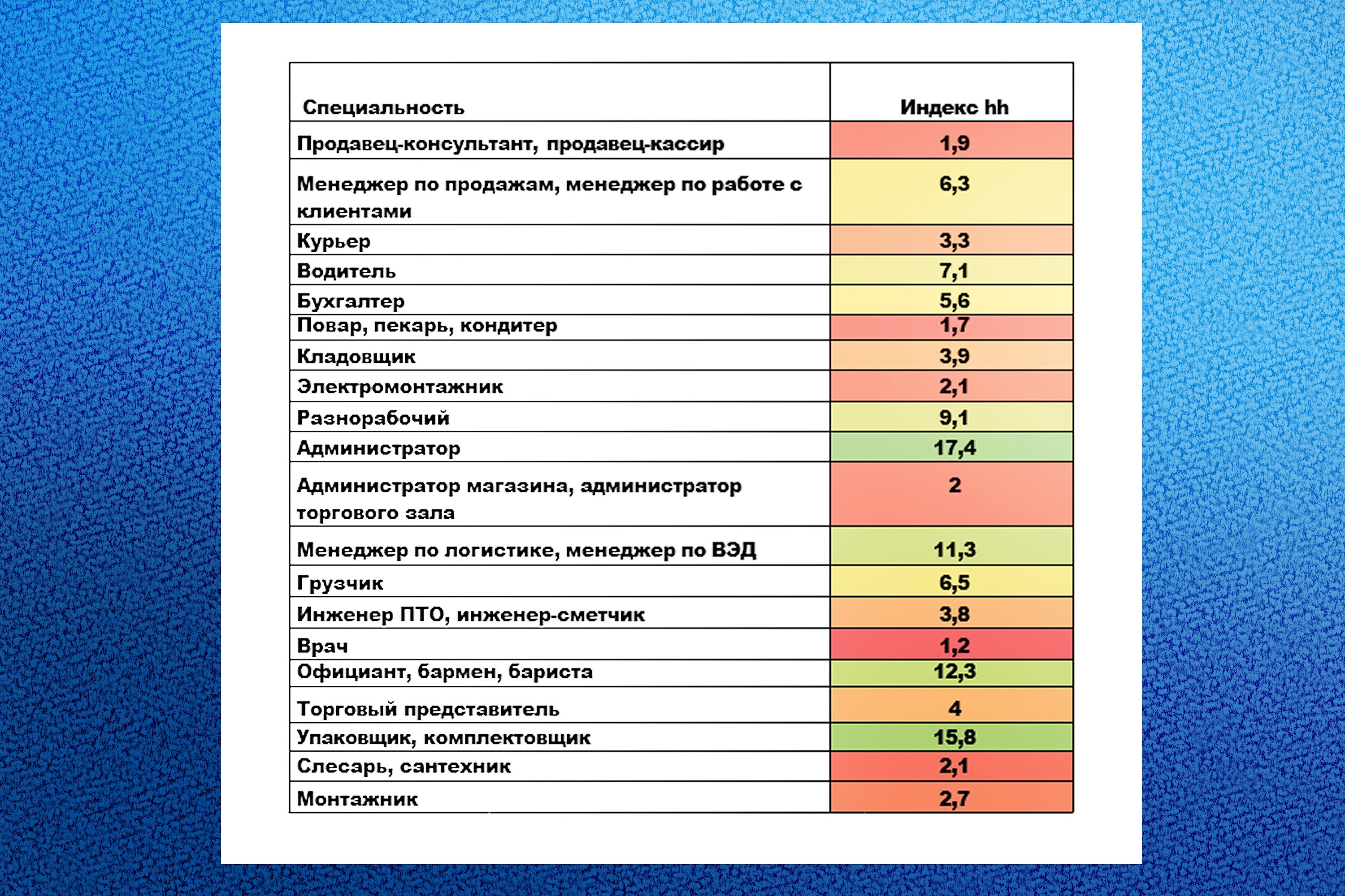 Помимо них, в список самых нужных профессий также вошли водители, разнорабочие, бухгалтеры, администраторы, менеджеры по логистике и официанты. На некоторых позициях, особенно в сфере услуг и неквалифицированного труда, конкуренция, напротив, крайне высока: на одну вакансию администратора претендуют в среднем 17,4 человека, упаковщика – 15,8, официанта – 12,3.