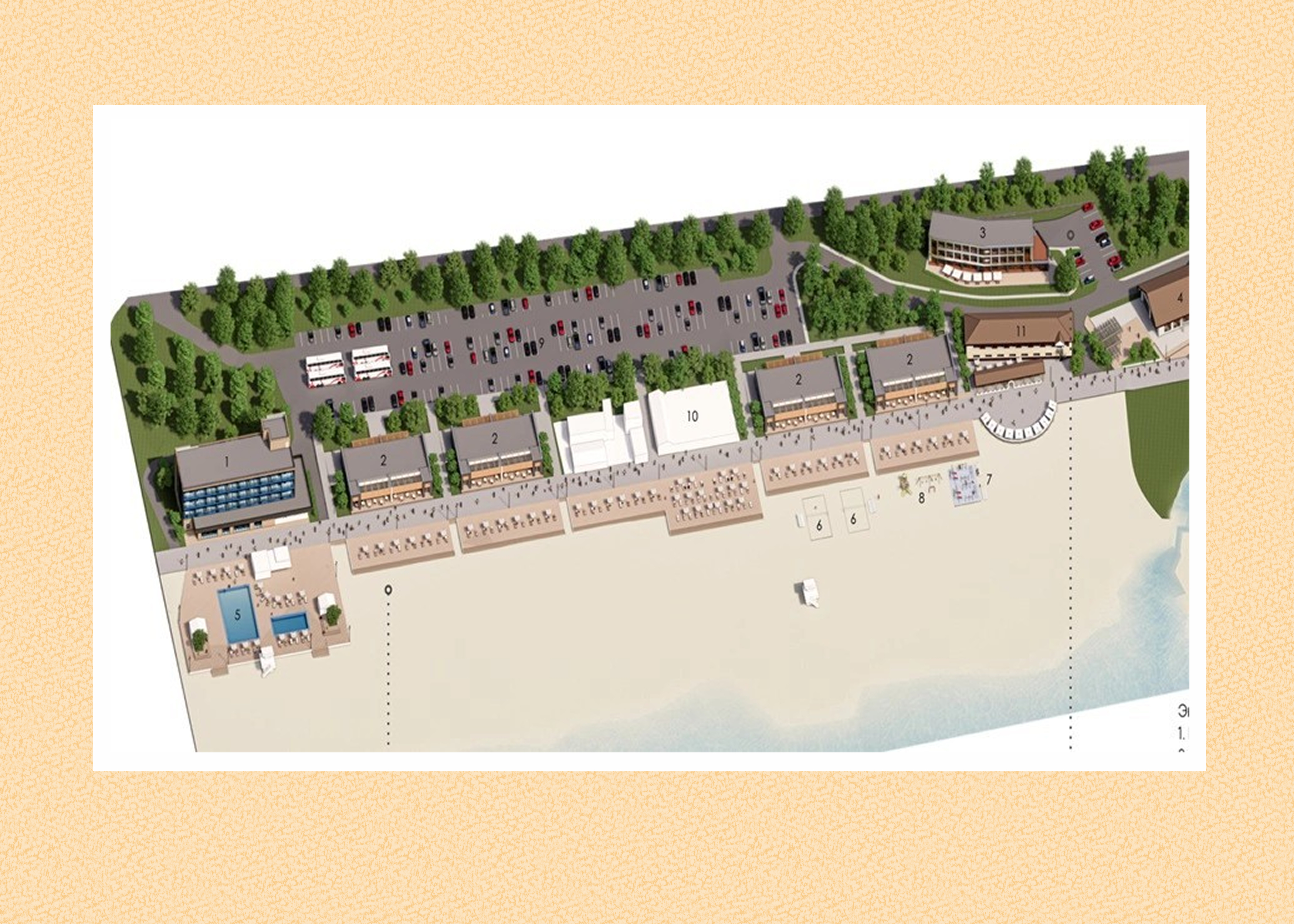 Жителям обещают променад шириной в 20 метров вдоль всей прибрежной полосы, дорогу-дублёр, которая уберёт машины подальше от отдыхающих, электрическую подстанцию мощностью 110 киловольт, тёплые бассейны, бани и оформление в едином архитектурном стиле.