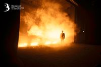 Сцена погружает зрителя в лаконичную, почти минималистичную эстетику, где аскетичные интерьеры усадеб соседствуют с динамичной видеографией, проецирующей на стены то огненные всполохи, то мрачные очертания дубрав. Художник по свету и сценограф создают не декорации, а настроение — тревожное, напряженное, как натянутая струна.