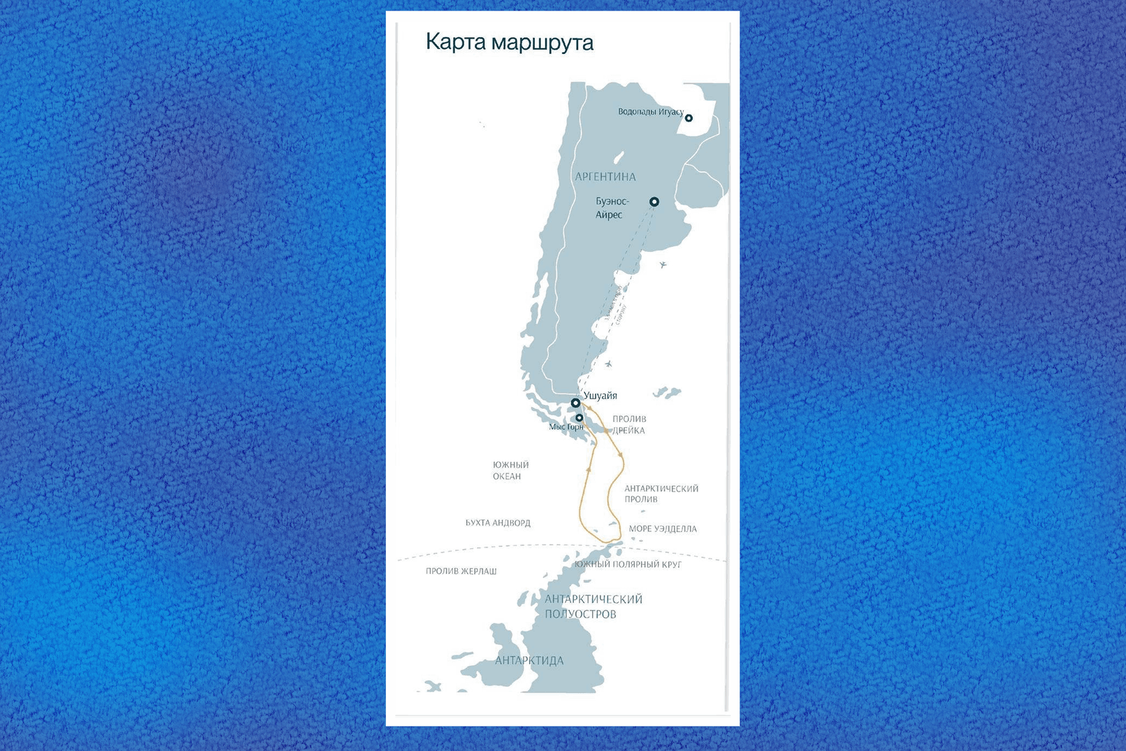 – Все экспедиционные маршруты в Антарктиду осуществляются из самого южного города Южной Америки – Ушуайя. Чтобы добраться до него, необходимо совершить трансатлантический перелет до Буэнос-Айреса, а затем внутренний рейс. Длительность маршрутов по Антарктиде может составлять 9-11 дней, – говорит Анна Кудряшова.