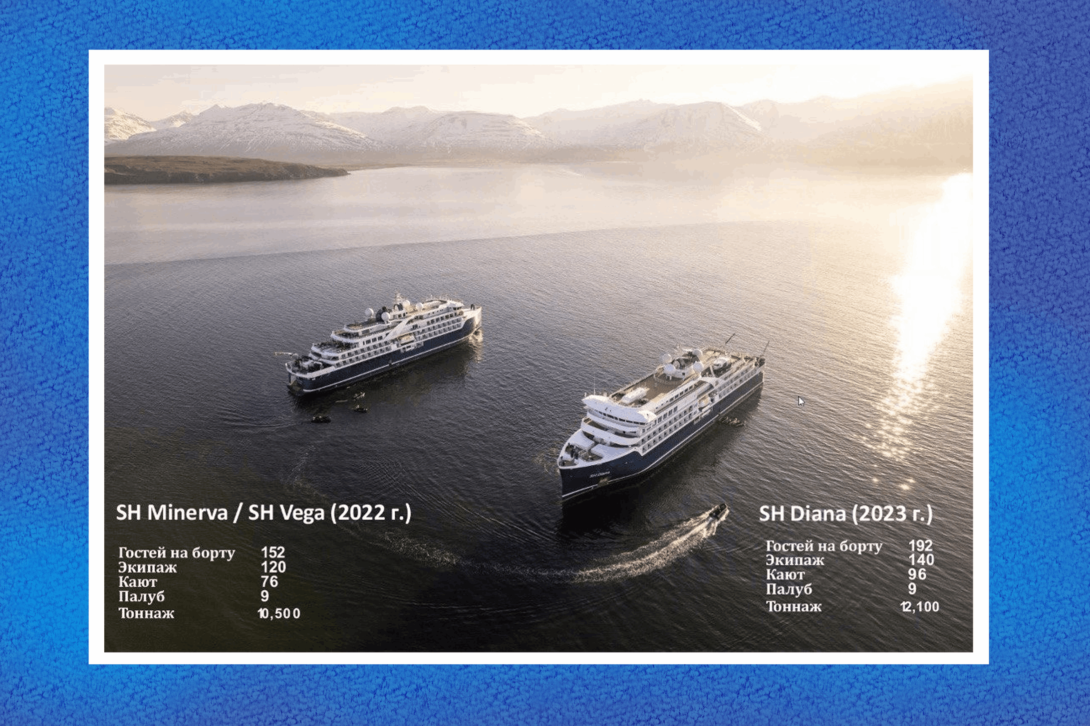 Также они предоставляют на борту широкий спектр включенных услуг: экипировка, водонепроницаемая куртка парка, специальные резиновые сапоги, рюкзак, питание, экскурсионная программа, лекции, стирка-сушка белья, Wi-Fi, – детализировала вопрос цены-качества управляющая туристическим агентством Theartoftravel Анна Кудряшова.